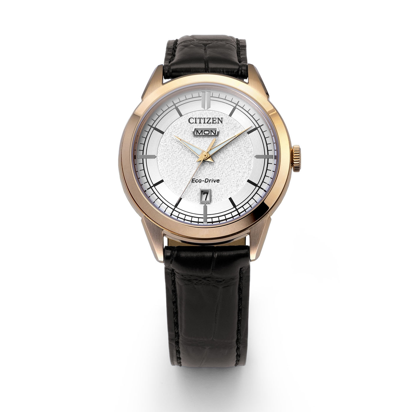 Classic, elegant and featuring an unusual day-date display at the 6 o'clock (date) and 12 o'clock (day of the week) positions.