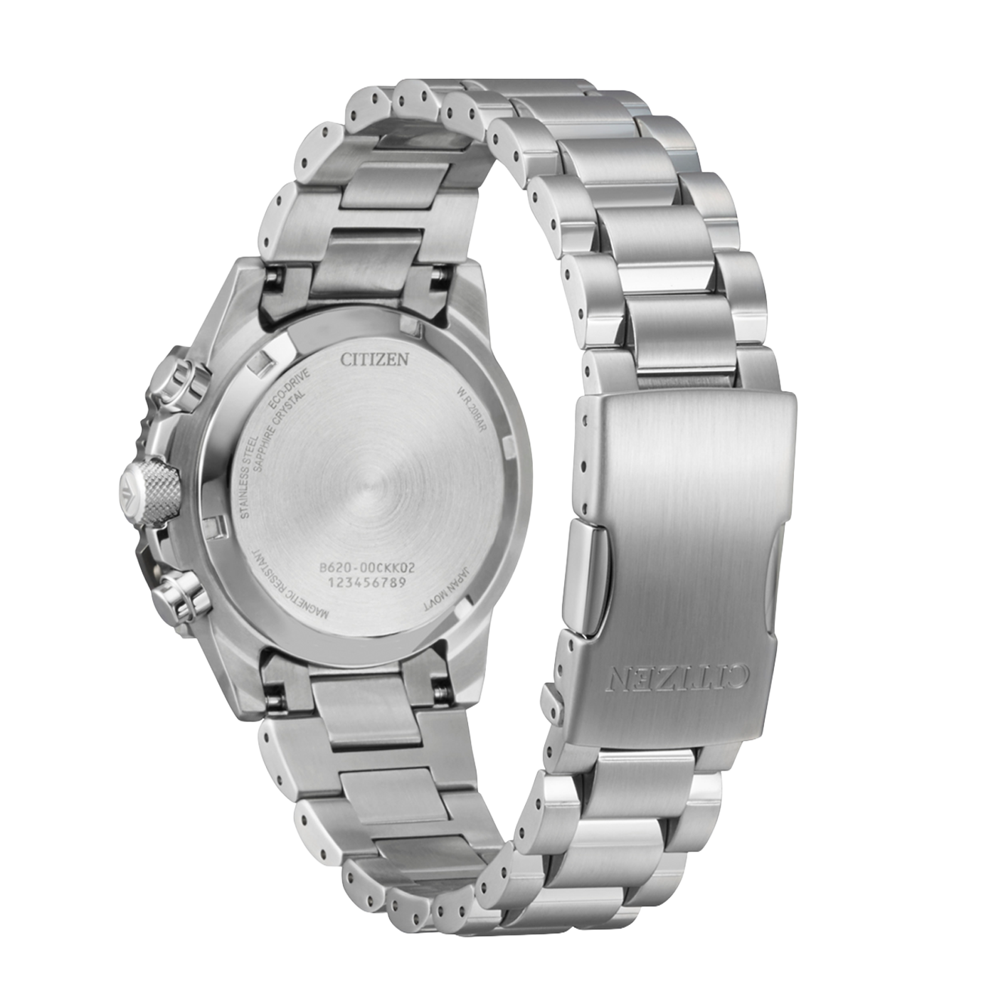 It also features a scratch-resistant sapphire glass with anti-reflective coating, magnetic resistance up to 4800A/m and water resistance up to 20 bar (200 meters). The Eco-Drive movement is solar-powered and has a power reserve of 9 months when fully charged. The case and bracelet are made of stainless steel.